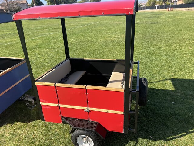If you’re looking for a crowd-pleasing rental that’s family-friendly, highly visible, and perfect for large attendance events, the Large Deluxe Trackless Train delivers memorable rides, great photo moments, and nonstop smiles from start to finish.The train has an engineer, locomotive and 3 passenger cars. The passenger cars are designed as a coal cart, standard cart and caboose. This train can carry a total of 12 riders at once. Min 1 Hour rental within delivery area. Customers are responsible for attending the train cars and helping passangers on and off of the train.